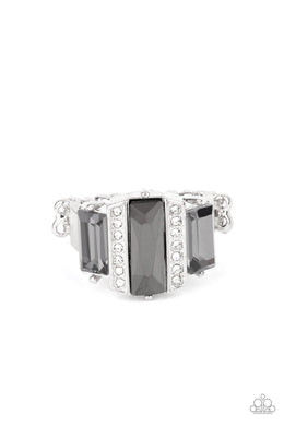 Eiffel Tower Ease - White (Rhinestone) Ring